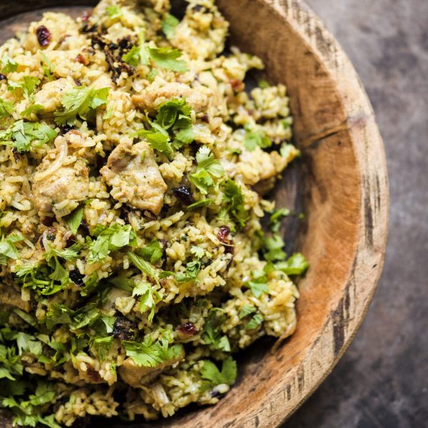 South Asian biryani, a mixture of rice, spices and meat, inspired this aromatic, flavor-packed recipe.