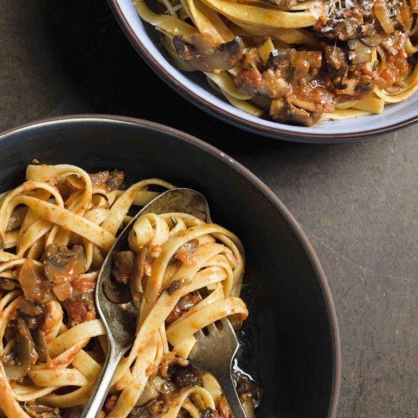 We found, however, that we could coax rich, meaty flavor simply from cooking out the moisture from a generous amount of cremini mushrooms, so we skipped the pricy porcinis. Rosemary and white wine add balancing herbal notes and acidity. We like the ragù on wide, strand-shaped pasta, but it also works well with short, chunkier shapes such as penne and cavatappi.