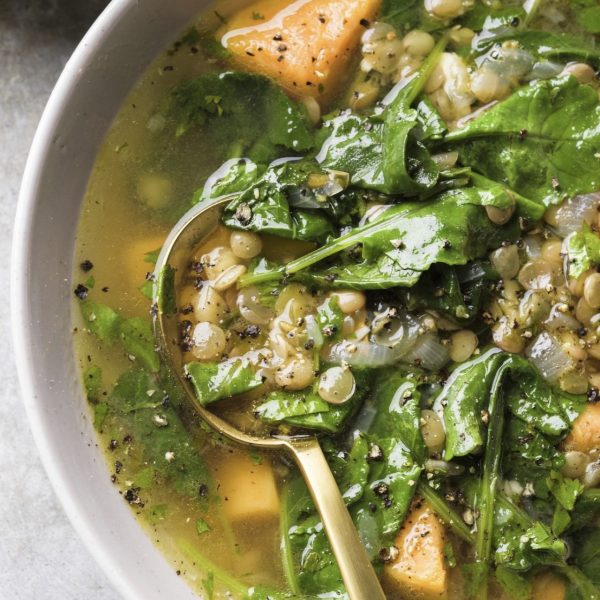 Lemony Lentil-Kale with Sweet Potatoes Soup